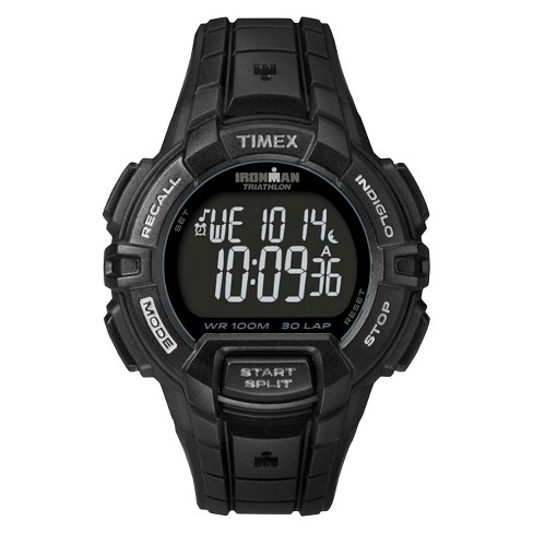 Timex full size ironman rugged 30 digital watch buy it here another excellent watch that can handle just as much as the modern man does every day the timex ironman rugged 30 watch is a sports watch at its core with a 30 lap memory stopwatch a countdown timer and alarm a sturdy quartz movement and a bold black water resistant case for up to 100 meters.